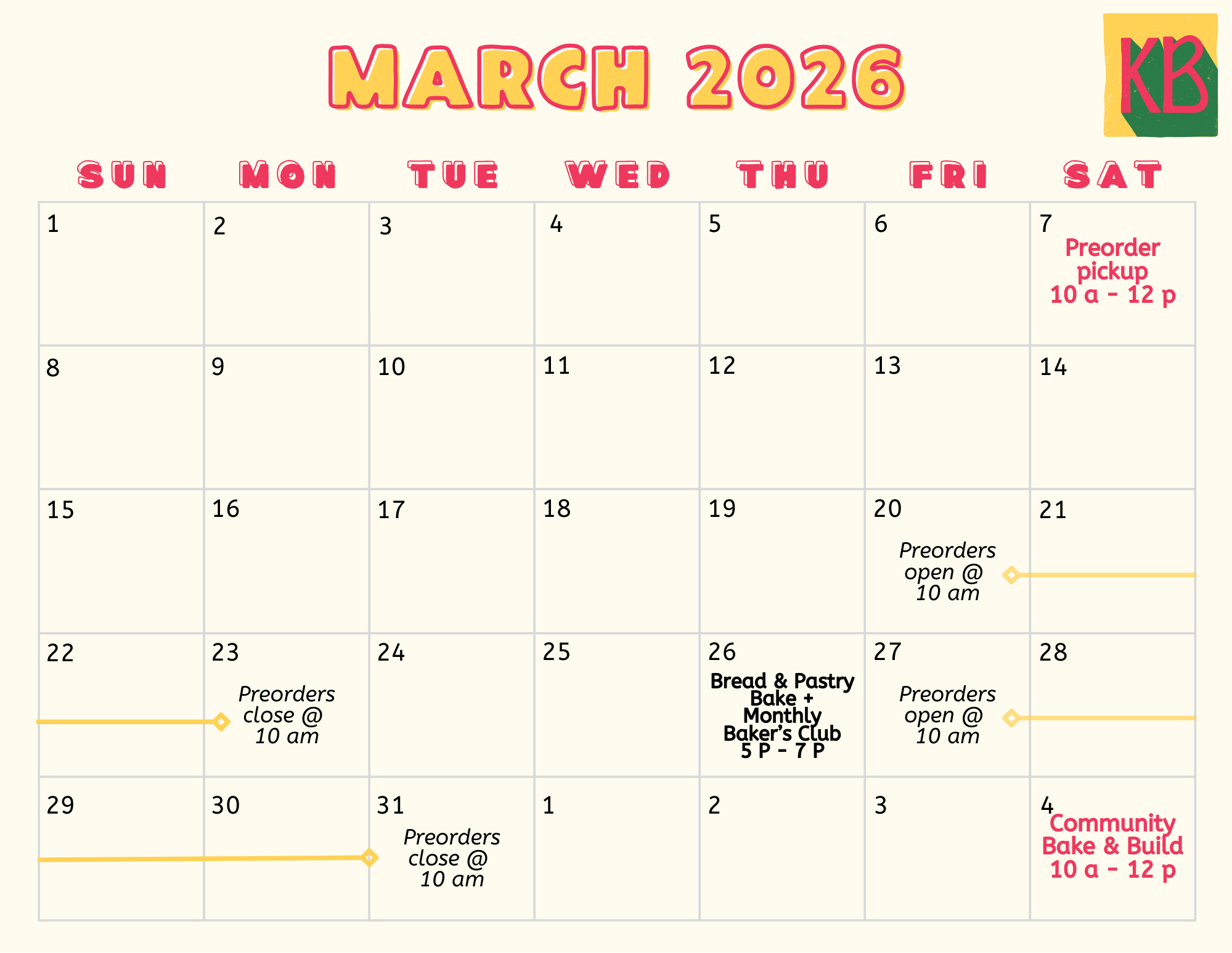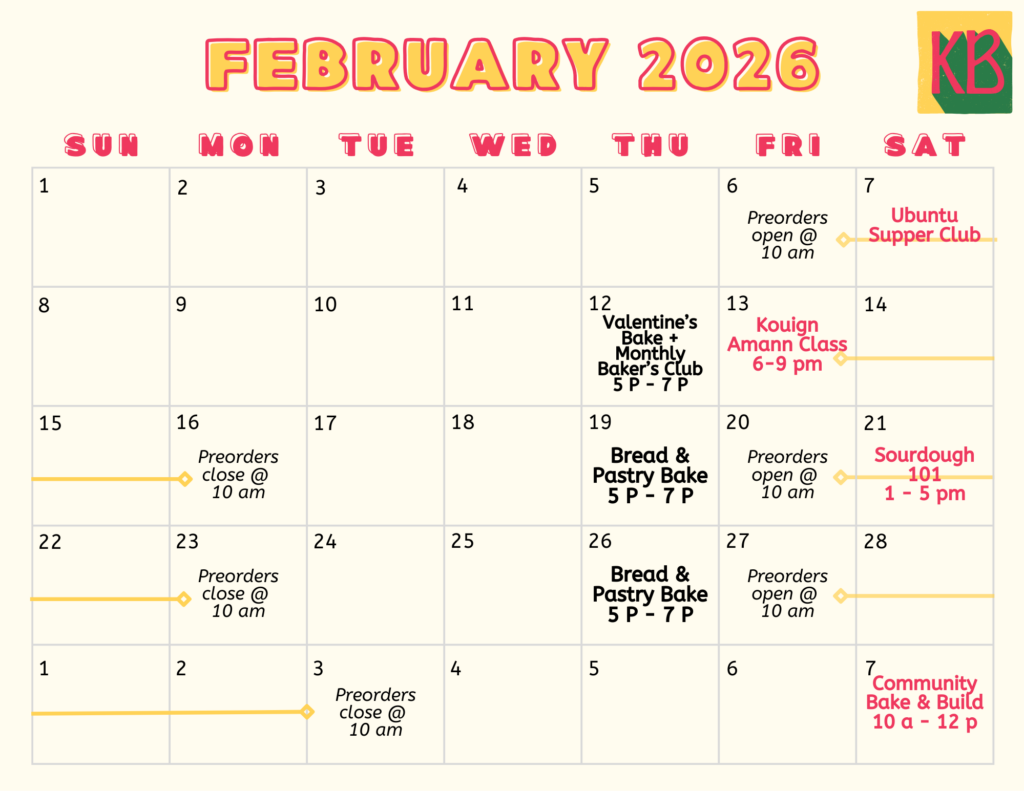 If you are part of the Bake of the Week Club, you will receive an email once the preorders open on the website. To join the list, email kuluntu@kuluntubakery.org.