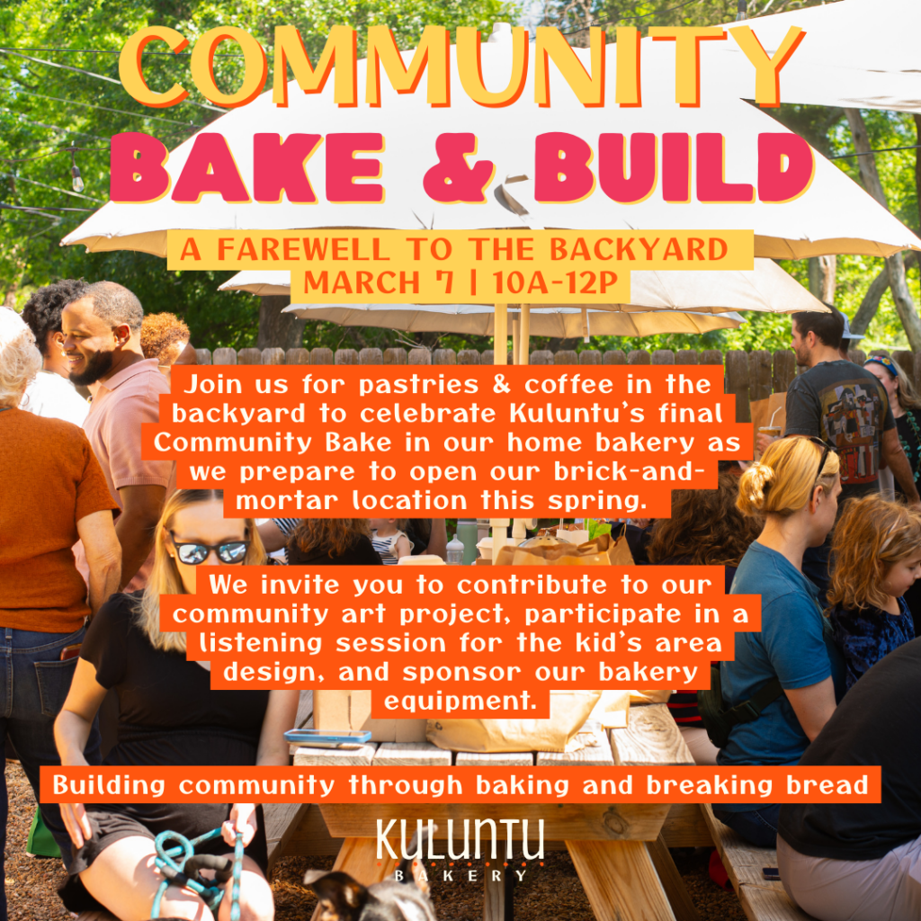 Our next Community Bake (and final one in our backyard!) is on March 7 from 10 am – 12 pm.